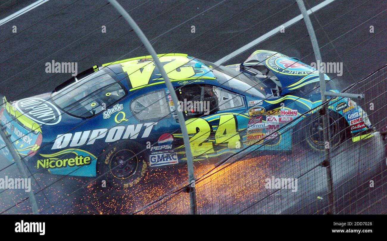 No Film No Video No Tv No Documentary Jeff Gordon S Car Kicks Up Sparks After Being Hit Near The Start Finish Line By Aj Allmendinger During The Coca Cola 600 At Lowe S Motor